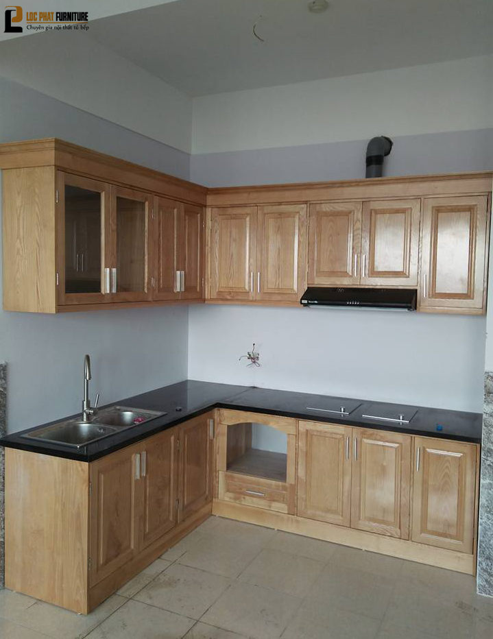 Trang chủ / Nội thất tủ bếp / Tủ bếp gỗ Sồi / Hoàn thiện tủ bếp gỗ sồi Nga nhà anh Hải ở Hoài Đức – Hà Nội